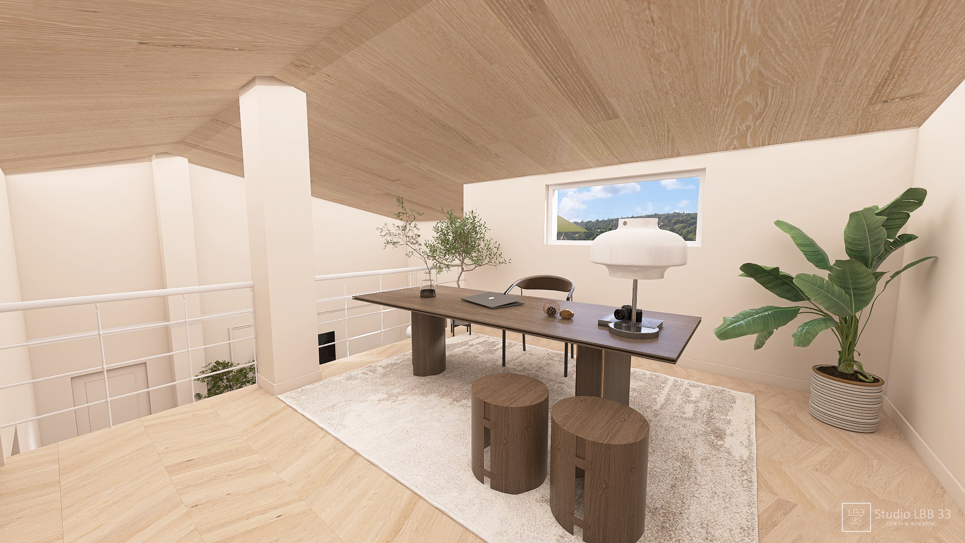 Il progetto d’interni si è concentrato sull’uso raffinato dei materiali e sulla ricerca dell’equilibrio tra eleganza classica e comfort contemporaneo. Pavimenti in marmo e parquet, boiserie in legno e soffitto rivestito in doghe creano un’atmosfera calda e avvolgente, esaltando l’armonia tra le superfici e la luce naturale.