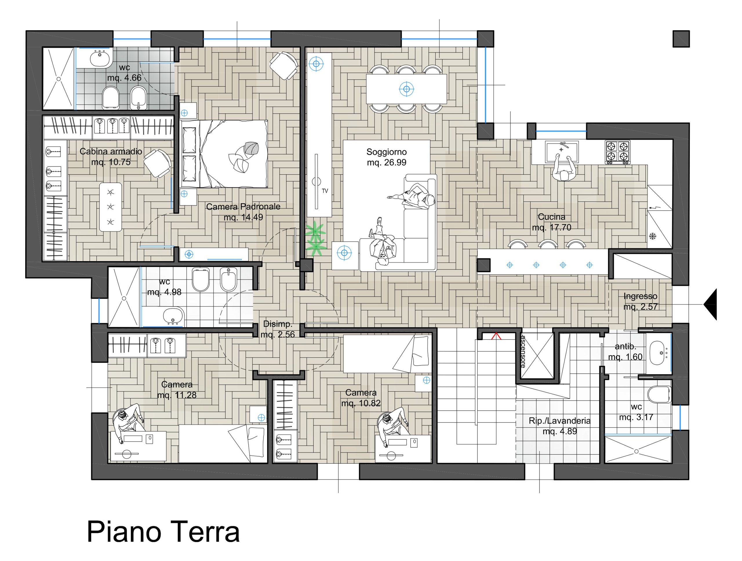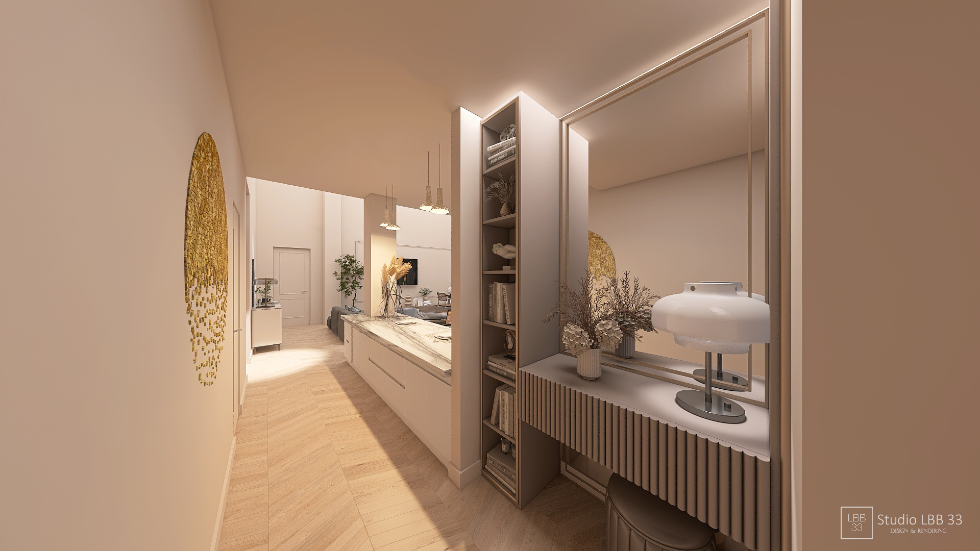 Le finiture, scelte con cura, conferiscono un carattere sobrio ma distintivo a tutti gli ambienti della casa, pensati per trasmettere senso di accoglienza e stile senza tempo. Un’abitazione unica, che racconta il dialogo tra architettura e interior design attraverso dettagli coerenti e senza eccessi.