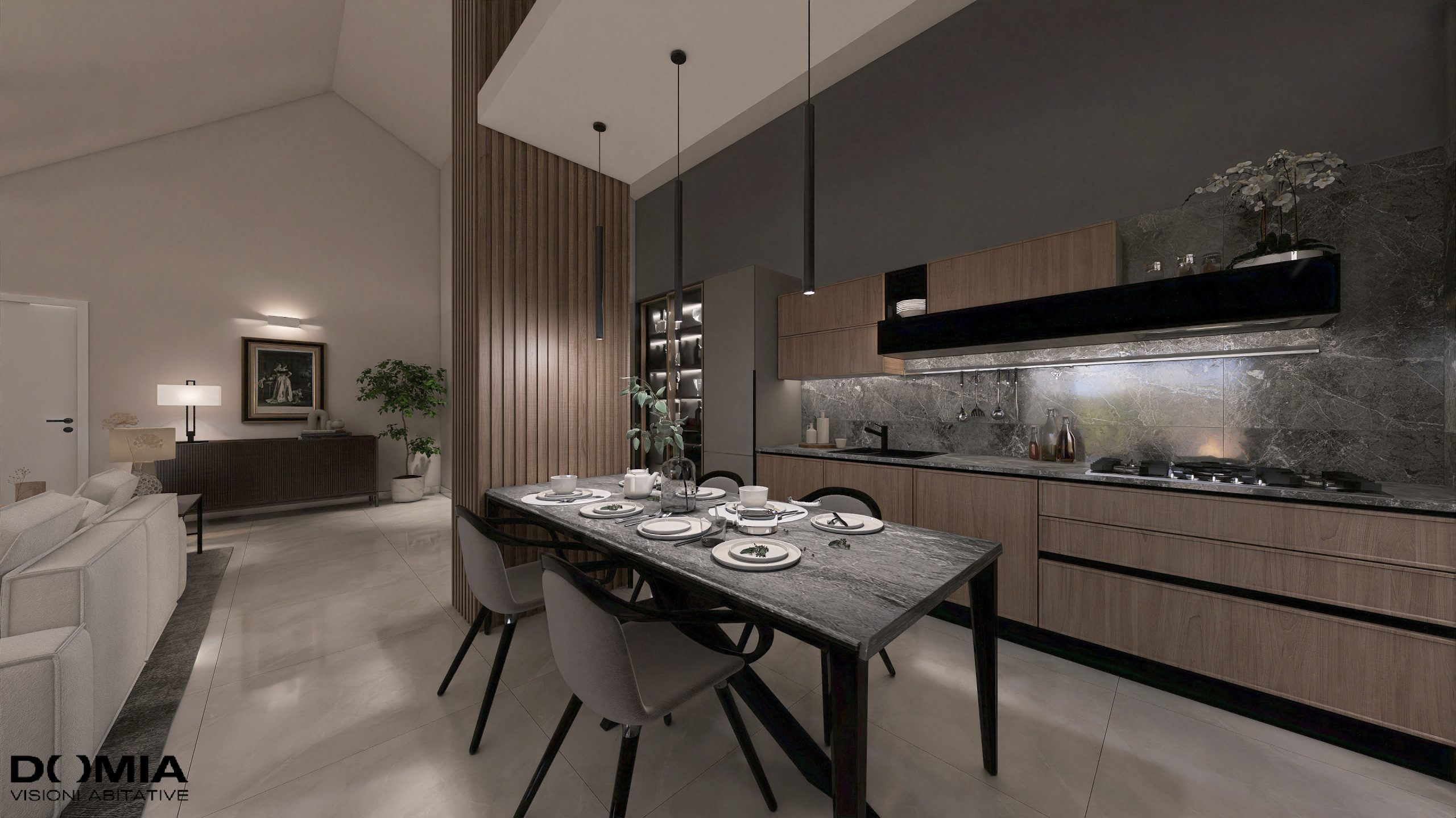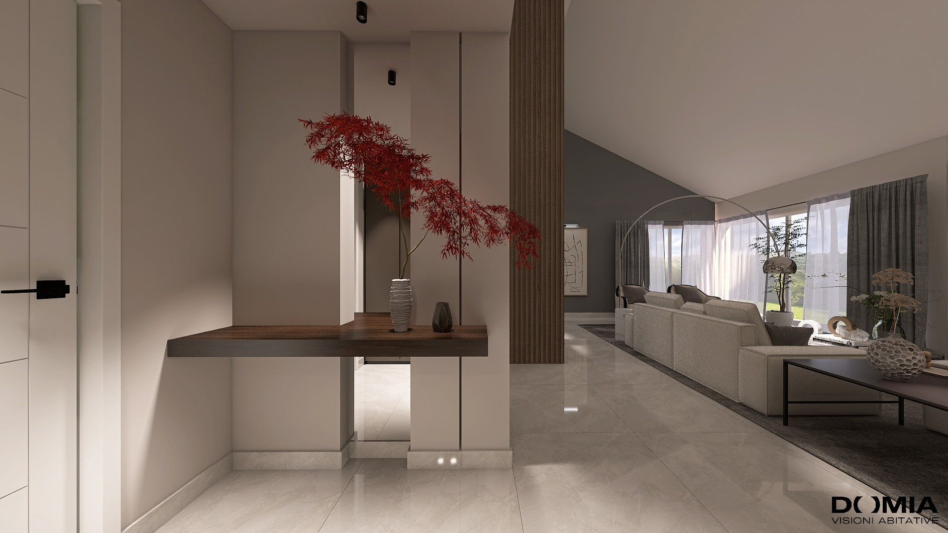 Le finiture, scelte con cura, conferiscono un carattere sobrio ma distintivo a tutti gli ambienti della casa, pensati per trasmettere senso di accoglienza e stile senza tempo. Un’abitazione unica, che racconta il dialogo tra architettura e interior design attraverso dettagli coerenti e senza eccessi.