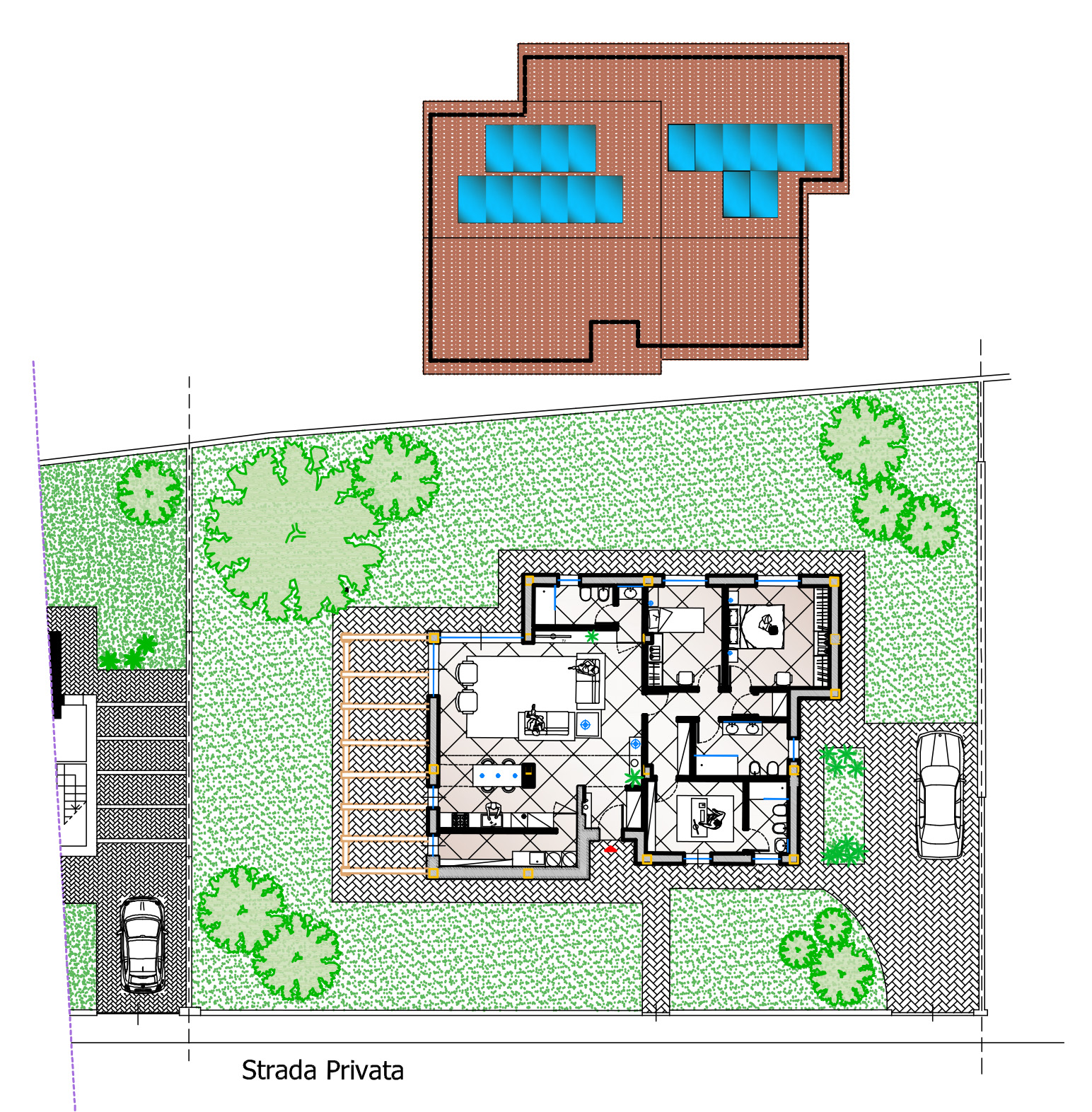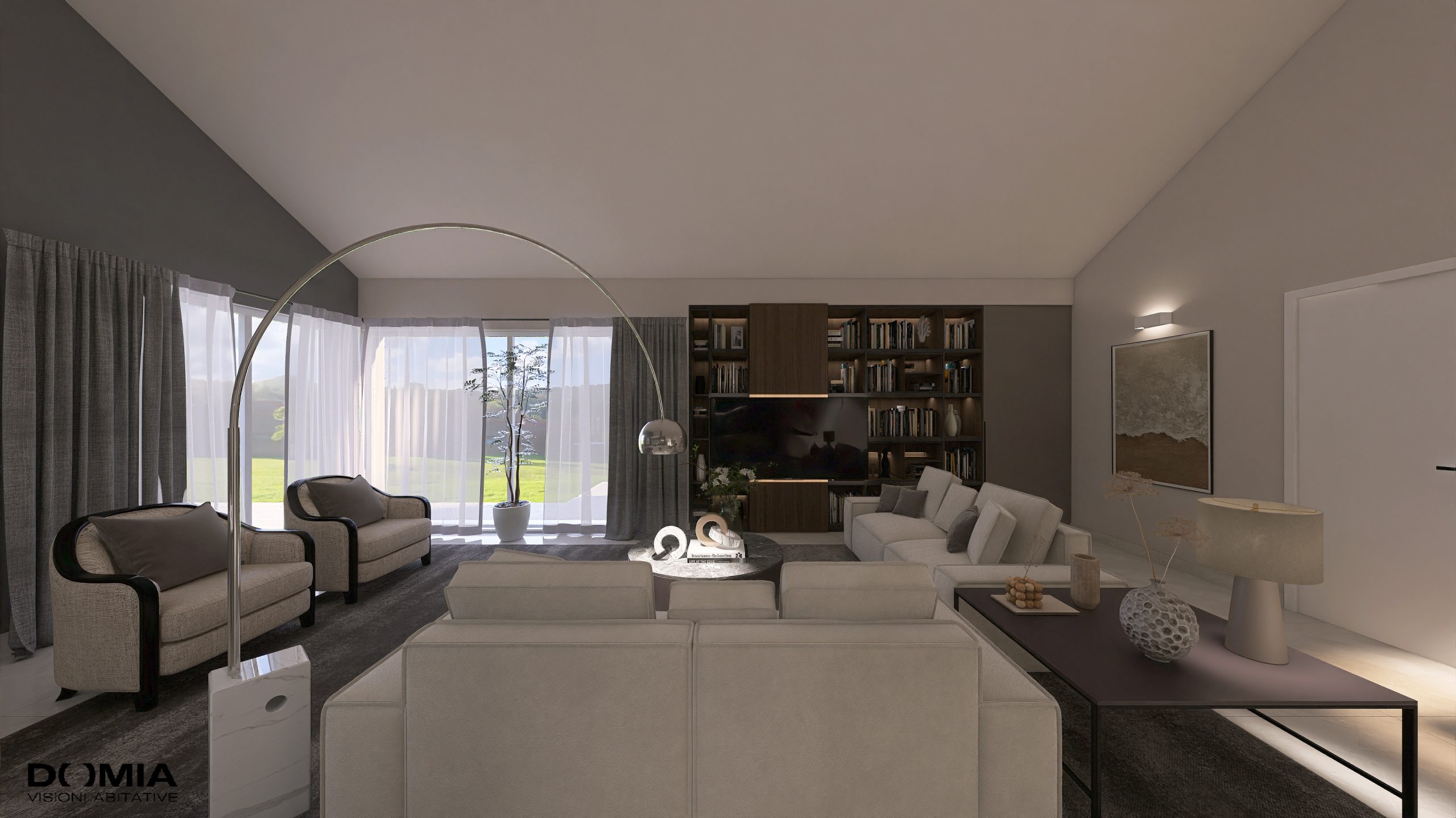 Progetto per una villa su un unico livello pensata per valorizzare la luce naturale, garantire privacy e offrire ambienti funzionali e accoglienti, con finiture sobrie ed eleganti immerse nel verde.